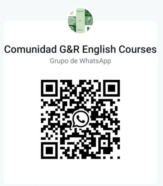 Hemos creado un grupo de WhatsApp exclusivo para la Comunidad de G & R English Courses, y lo mejor de todo es que no necesitas ser un alumno actual para unirte. 🌟